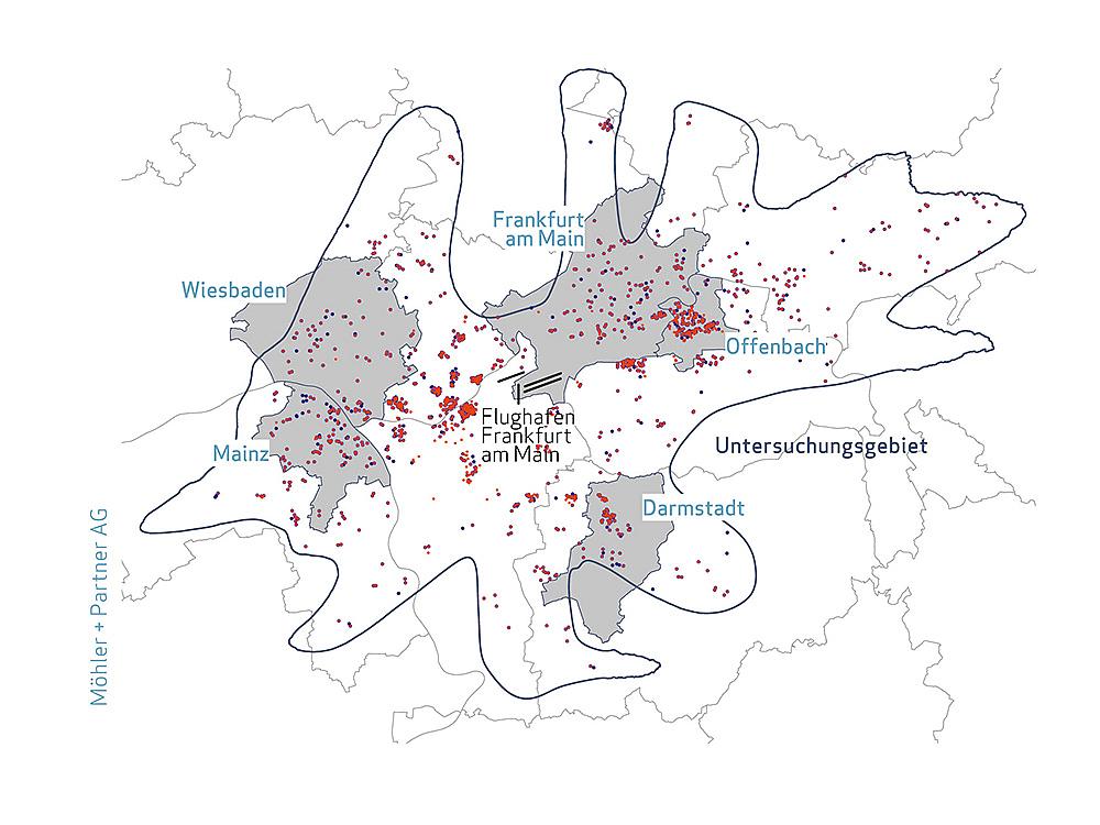 Ziel der NORAH-Wissenschaftlerinnen und -Wissenschaftler war es, in ihrer Stichprobe Erwachsene im Umkreis des Frankfurter Flughafens zu rekrutieren, die an ihrem Wohnort einem Fluglärmpegel von über 40 Dezibel ausgesetzt sind. Die Kontaktdaten der möglichen Teilnehmerinnen und Teilnehmer wurden mithilfe der Einwohnermeldeämter ermittelt.
