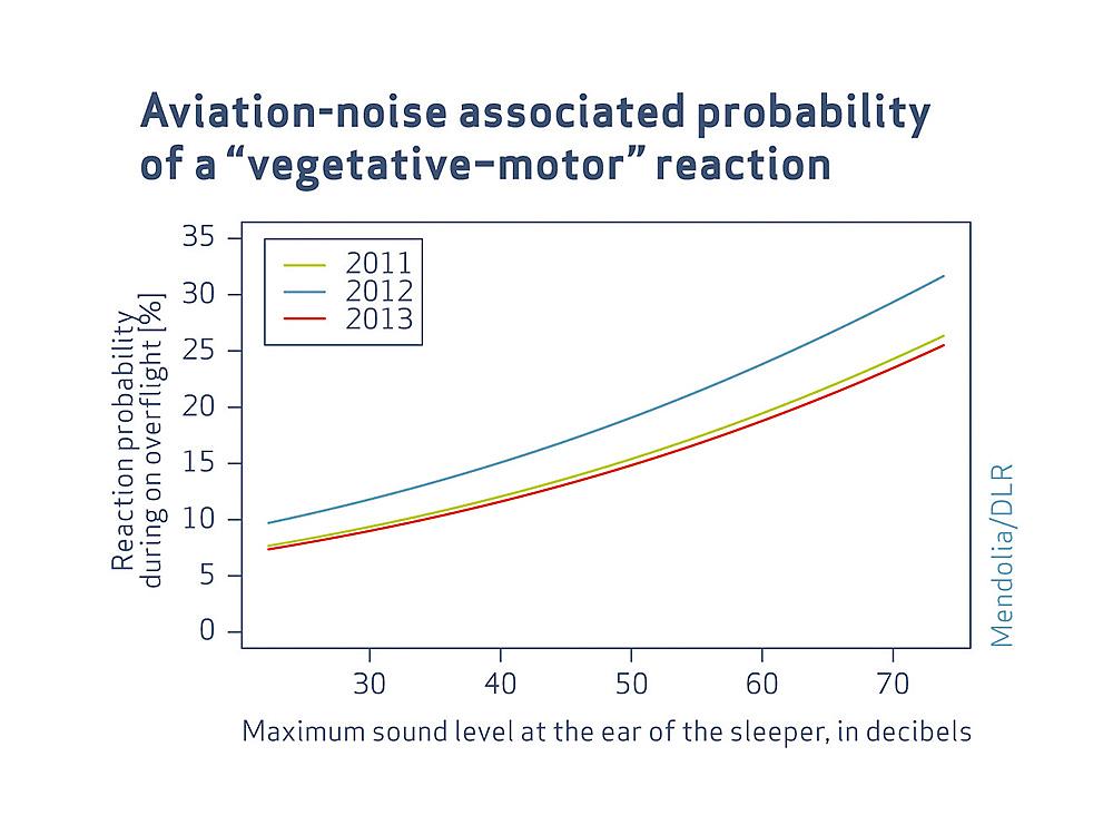 The results show that the physical reactions to overflights increased substantially from 2011 to 2012: in 2011 the participants reacted to 10.7 percent of the overflights with no interference from other Noise, in 2012 to 16.2 percent. In 2013 the proportion was 13 percent, i.e. it had fallen back again. The scientists cannot rule out that this may have to do with what is called a Change Effect. This is what noise impact researchers call it when people temporarily react more strongly to expected or actual noise changes, for example after the expansion of an airport.