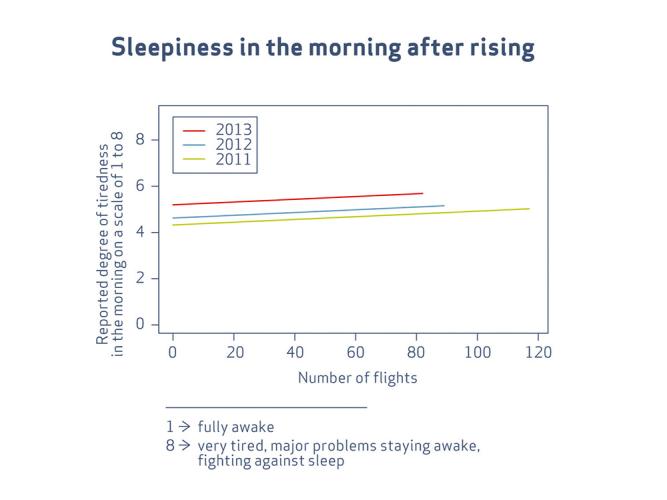 In 2013 the participants felt more tired and sleepy in the morning than in the previous years.
