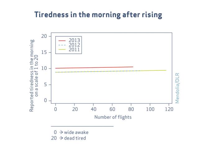 The morning after each night of measurements, the NORAH team asked all participants how sleepy and tired they felt. They used several scales for the answers, which are standard in scientific sleep studies. The researchers had expected that the residents subject to a higher noise exposure would also make a more negative subjective assessment of their sleep. And, in fact, for the investigation year 2011, when regular night flights were still taking place the respondents felt subjectively more tired after a night with a lot of overflights.