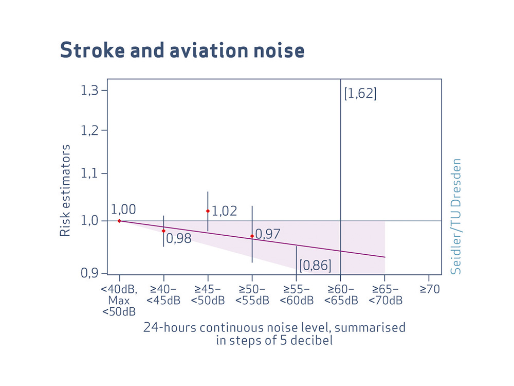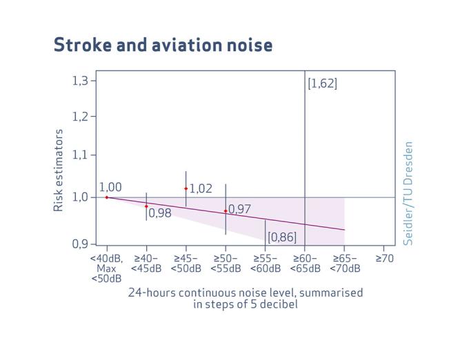 - There was no increase for stroke risk in aviation noise if the continuous noise level increased, but a reduction instead.